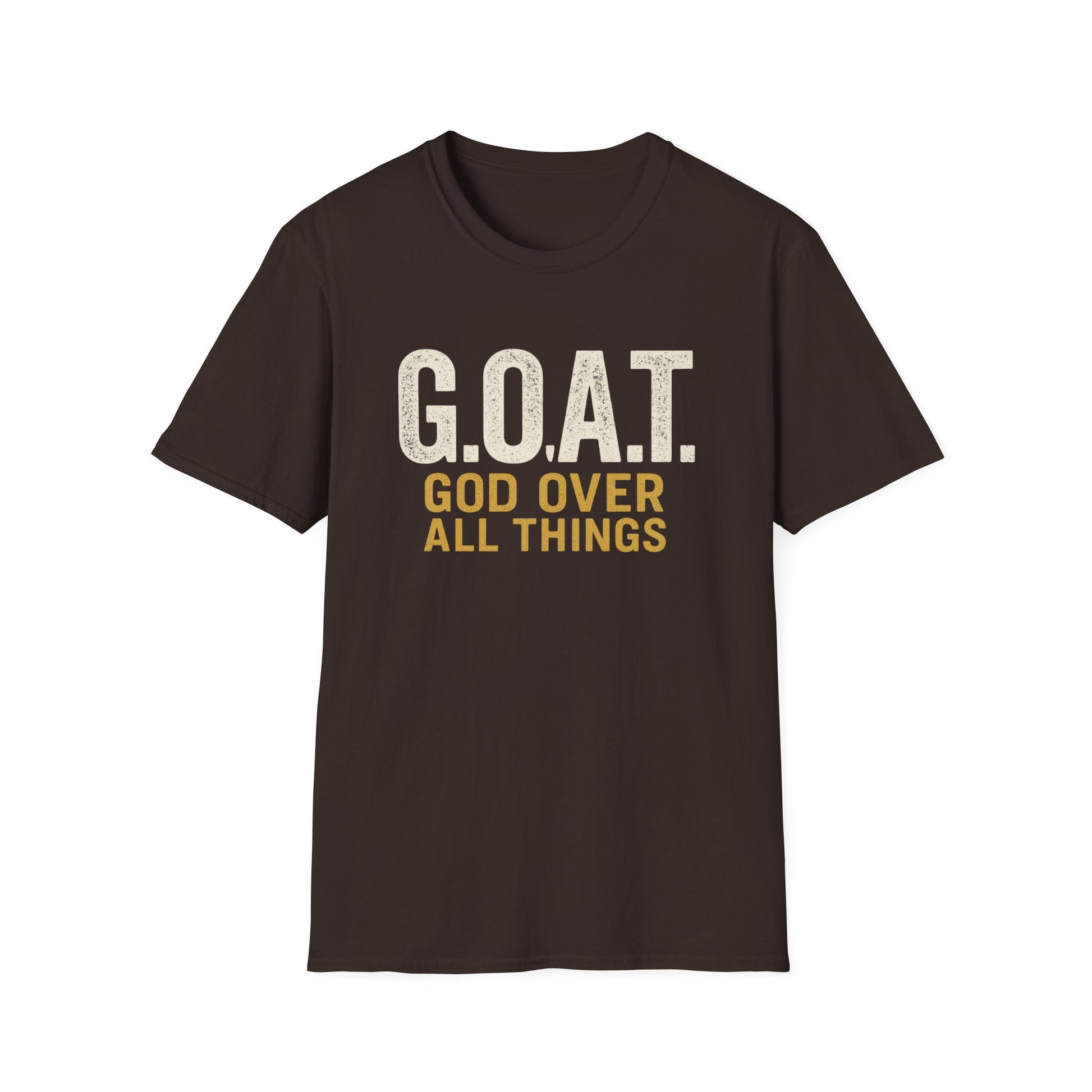 A unisex softstyle T-Shirt featuring the design 'God over all things (GOAT)'. This comfortable and durable shirt is perfect for printing and offers a versatile style suitable for any occasion. Ideal for adults looking for a stylish and meaningful wardrobe addition, this T-Shirt is made with ethically grown and harvested US cotton.